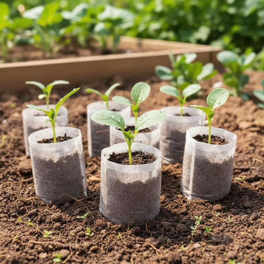 Produzidos com material biodegradável e respirável, permitem que as raízes cresçam livremente e sejam plantadas diretamente no solo, reduzindo o estresse do transplante e evitando o desperdício de plástico.