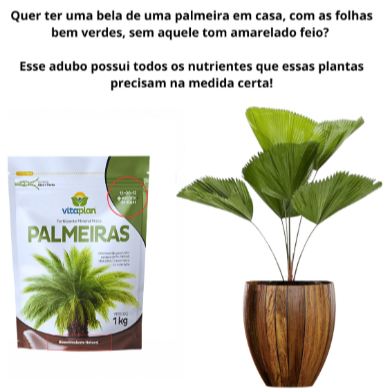Uso versátil: Indicado para palmeiras jovens ou adultas em jardins, vasos e áreas paisagísticas.