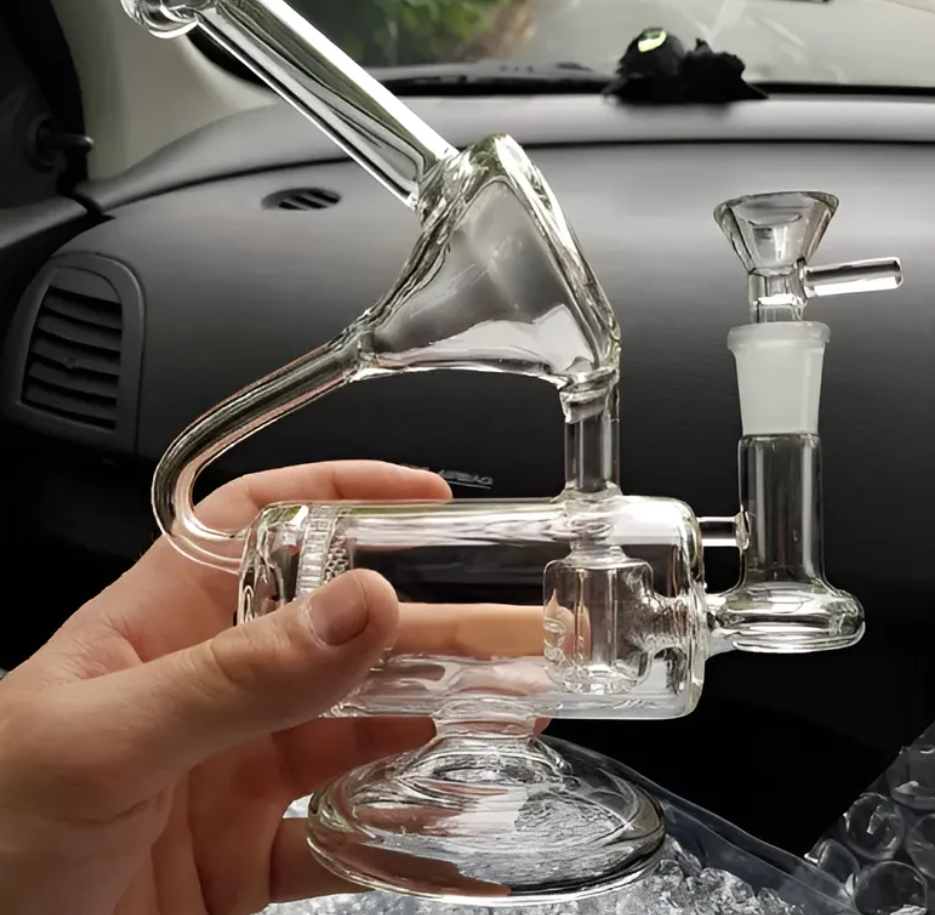 Fabricado em vidro transparente de alta qualidade, este bong oferece durabilidade e facilita a visualização do processo de filtragem. O design personalizado não é apenas estético, mas também otimiza o resfriamento e a purificação da fumaça, resultando em tragos mais suaves e agradáveis.