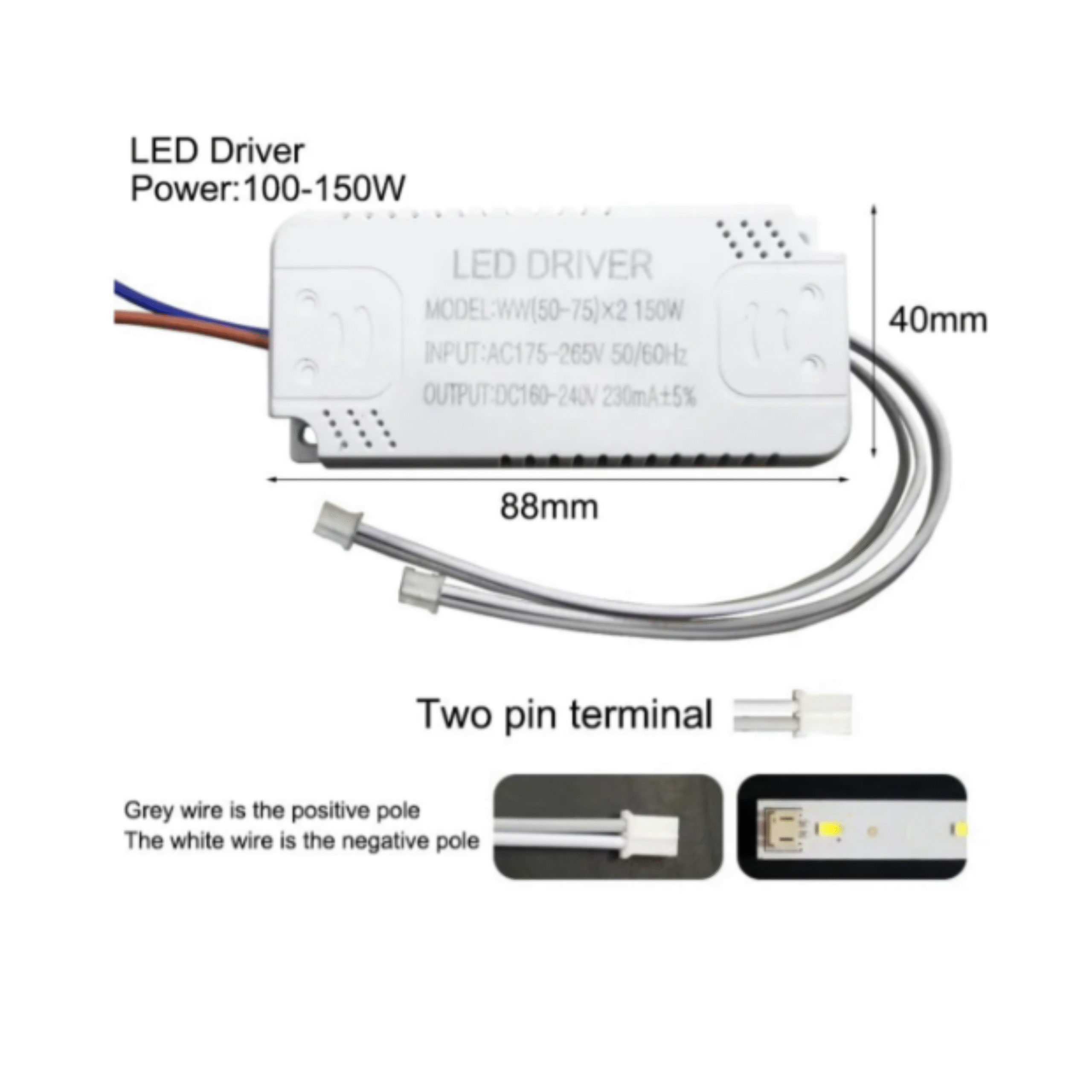 Tensão de saída: DC 160–240V