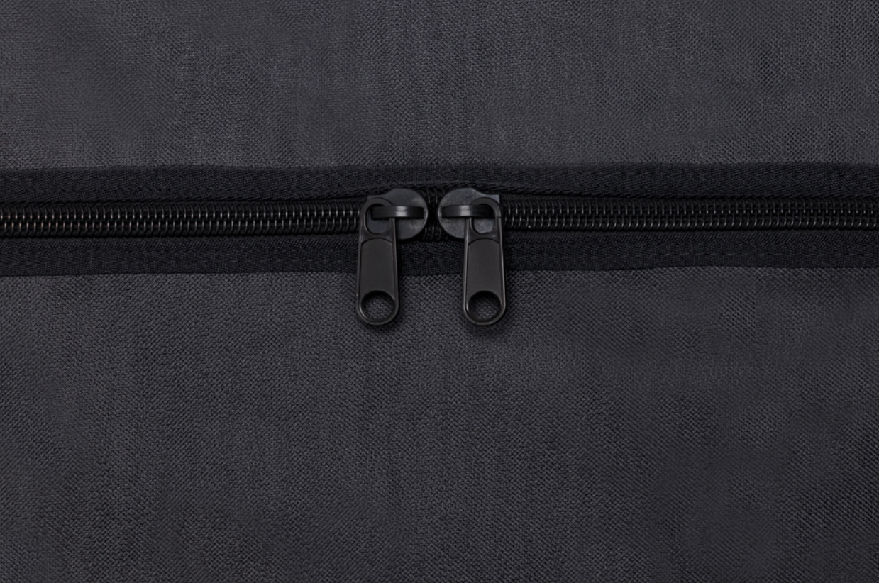 Zíperes reforçados e vedação eficiente contra vazamento de luz.