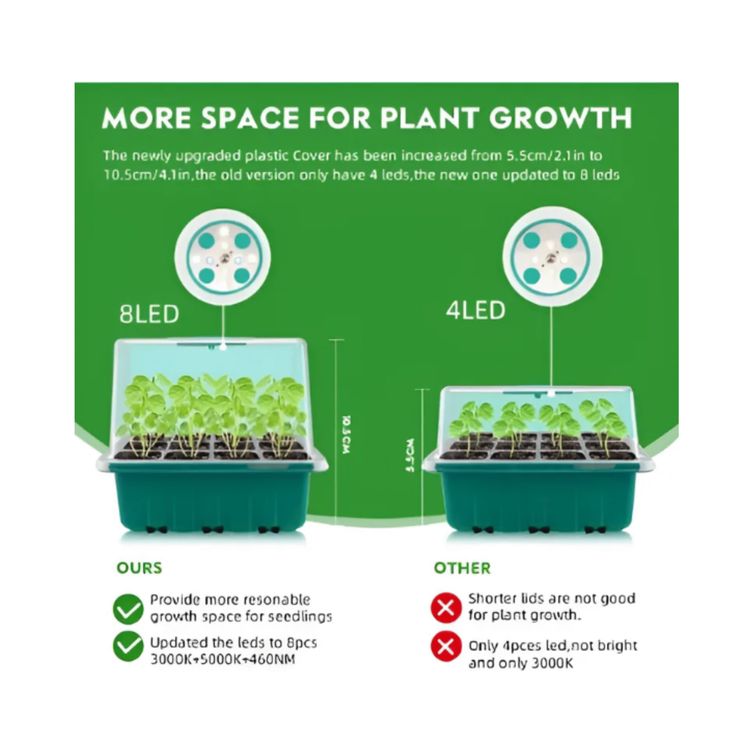 Os modelos equipados com Luz LED de 10W — com ou sem controle de intensidade — garantem uma iluminação adequada mesmo em ambientes internos ou com baixa luminosidade, proporcionando crescimento uniforme, enraizamento eficiente e desenvolvimento mais vigoroso.
