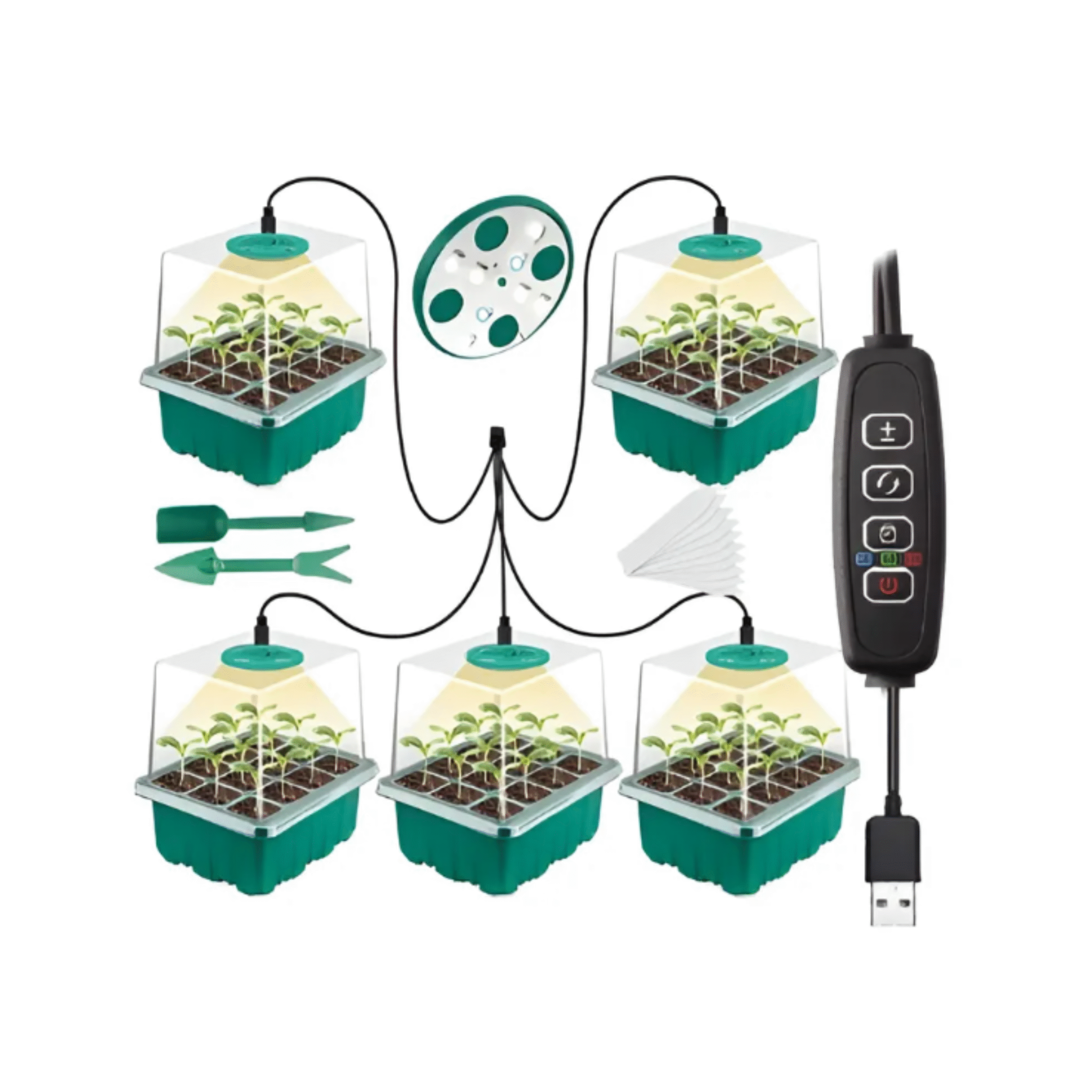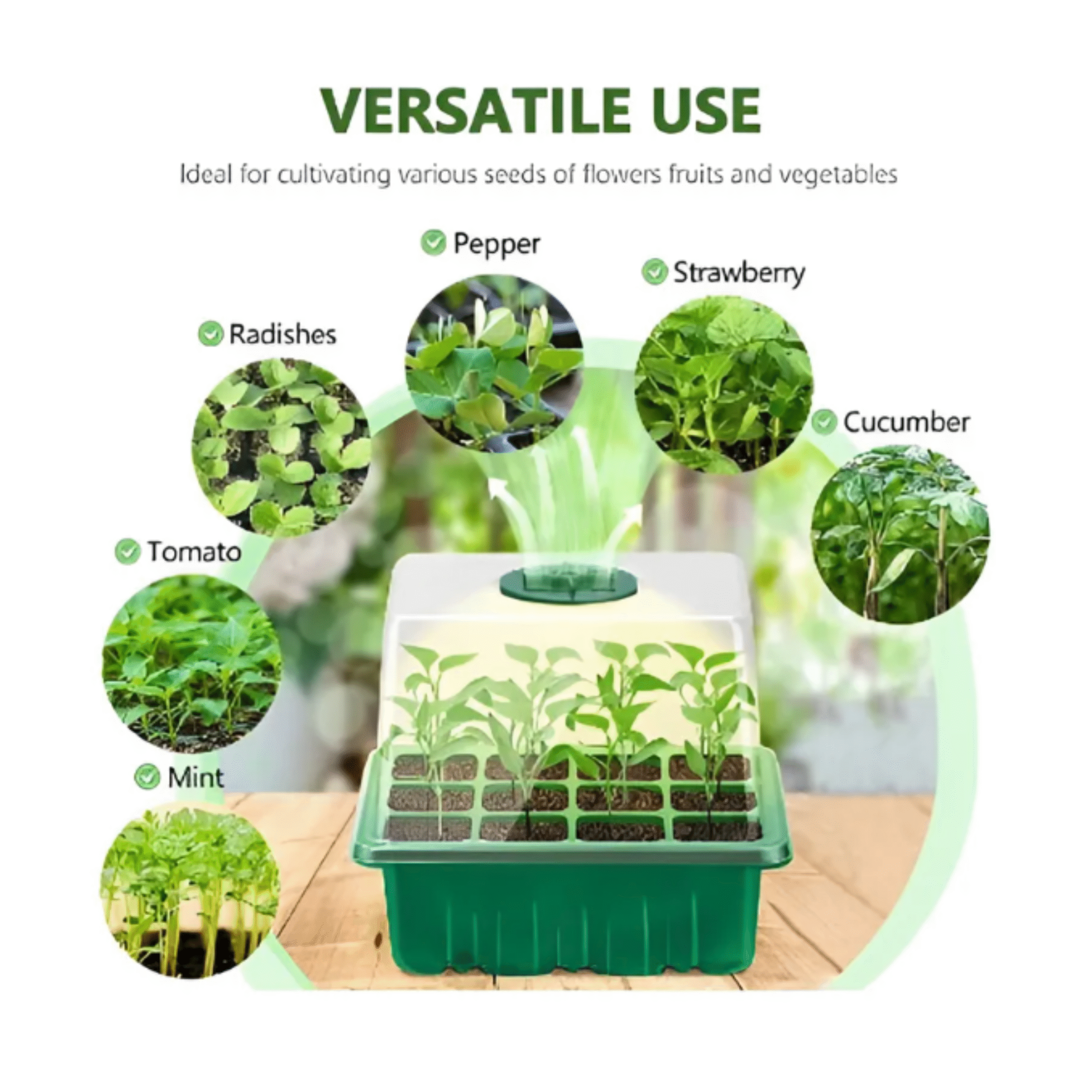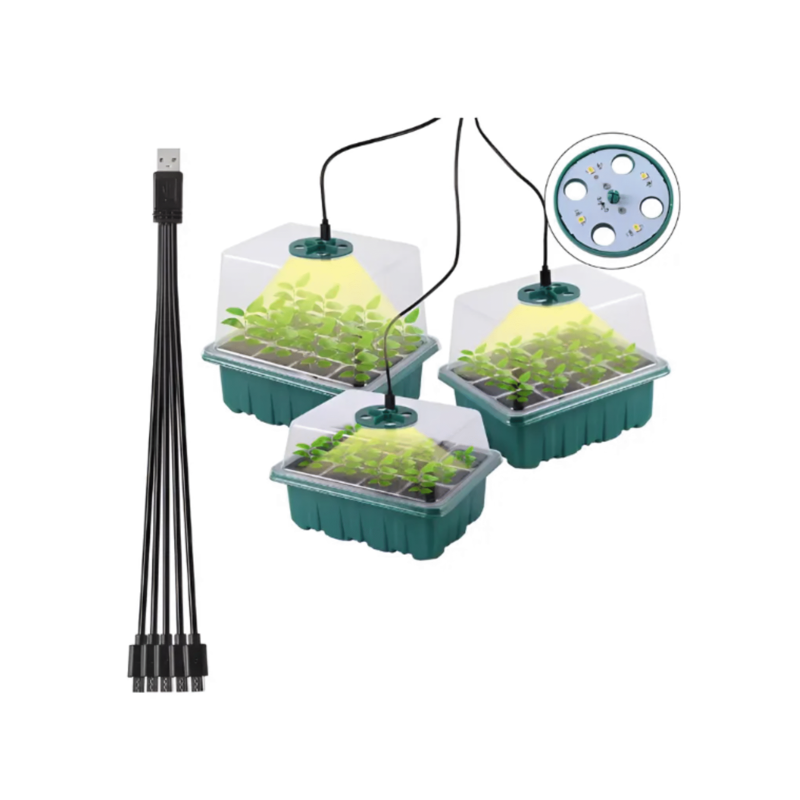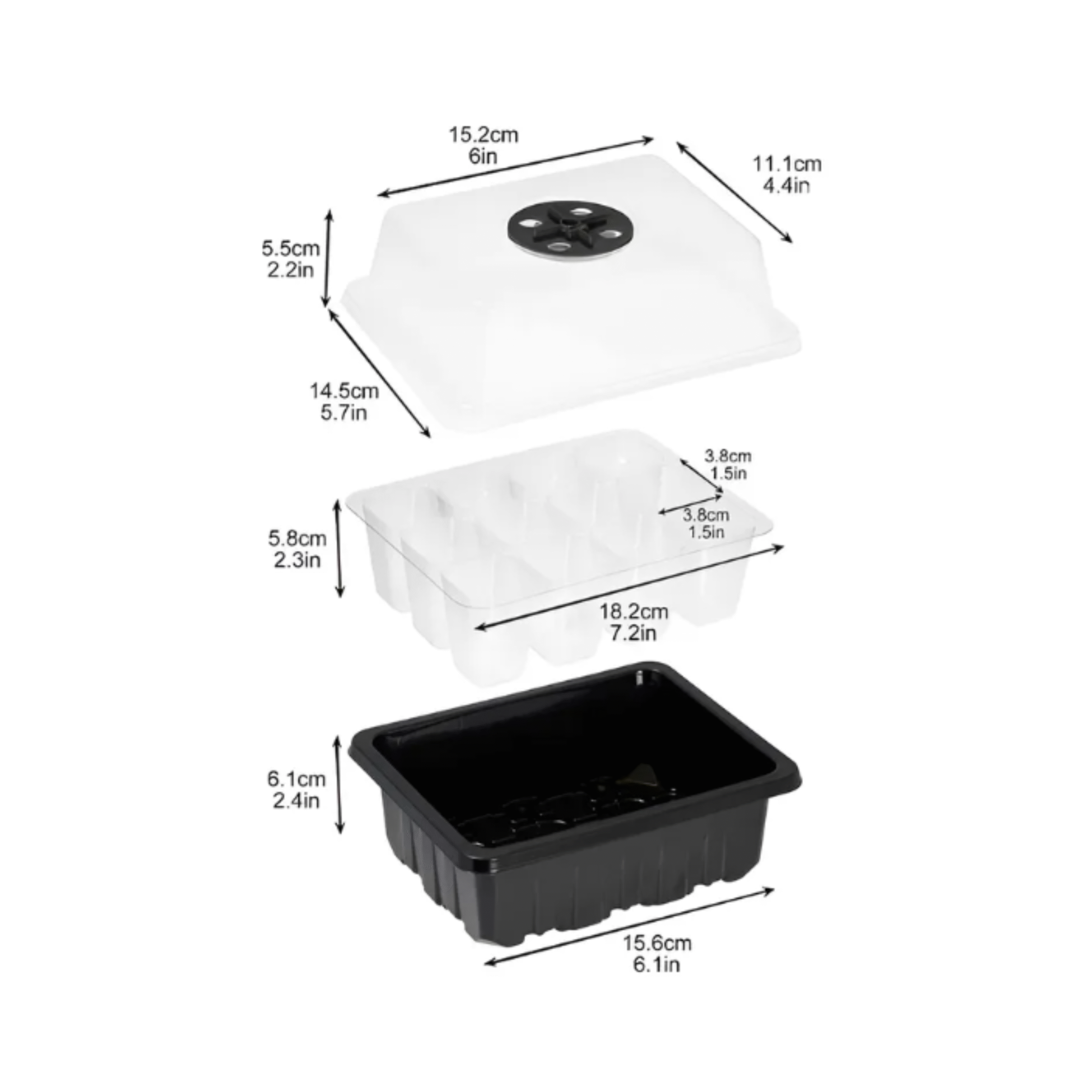 Com uma cúpula transparente de alta resistência, a estufa mantém o microclima ideal para o desenvolvimento inicial das plantas. Seus 12 compartimentos individuais permitem organizar diferentes espécies ou lotes de sementes de maneira prática e higiênica, evitando contaminações e otimizando o espaço.