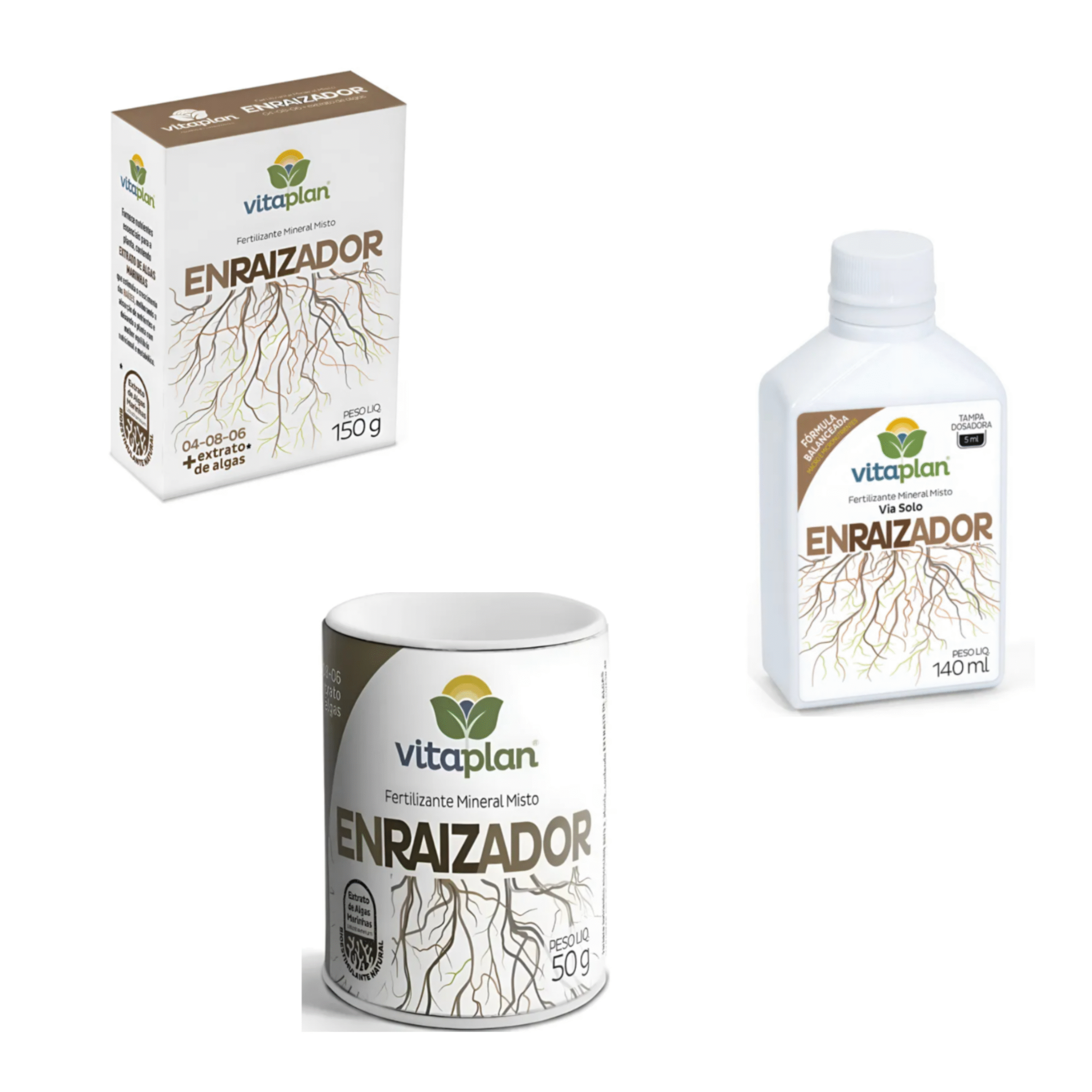 Disponível em diferentes versões — pó 150g, líquido 140ml e pastilhas 50g — o enraizador Vitaplan se adapta a todos os tipos de cultivo, desde vasos e jardins até mudas, estacas e plantas ornamentais. Ideal para transplantes, revitalização de plantas fracas e estímulo de brotações vigorosas.