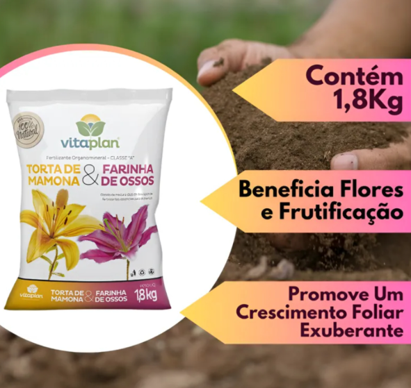 Fertilizante Torta de Mamona + Farinha de Osso (1kg ou 1,8kg) Vitaplan