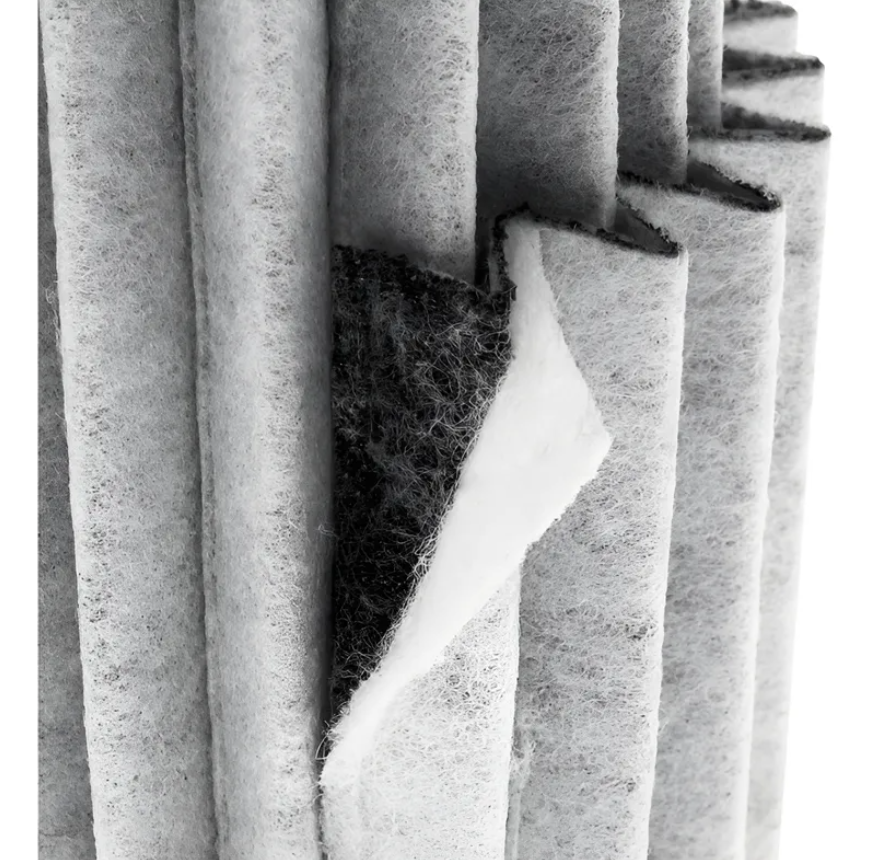 Tapete de lã multicamadas que melhora a filtragem e aumenta a vida útil do carvão.