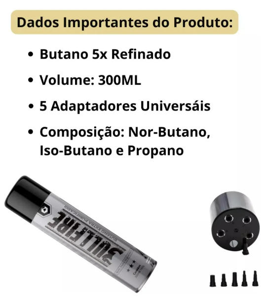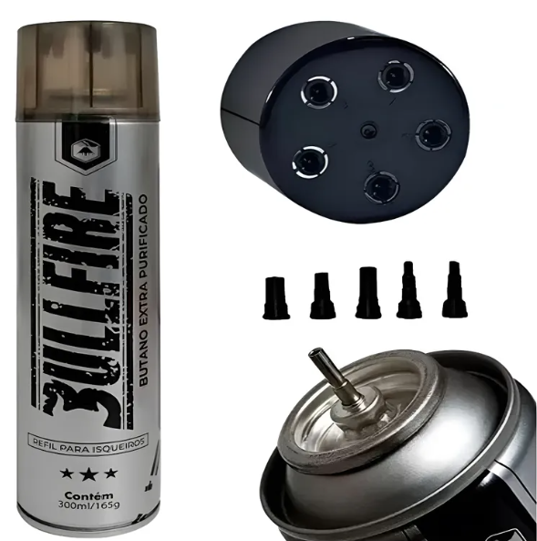 Gás Butano 300ml Bullfire Refil Maçarico 5 Adaptadores