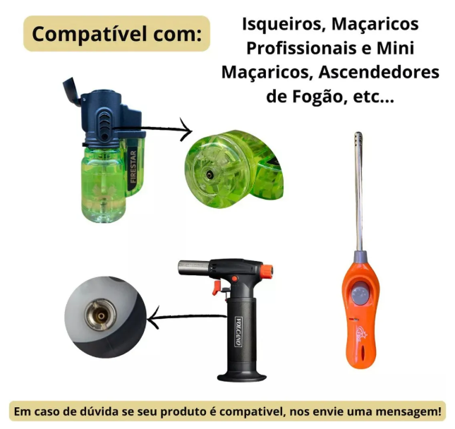 • Compatibilidade Universal: Bico projetado para encaixe na maioria dos isqueiros e maçaricos recarregáveis (consulte a observação de incompatibilidade).