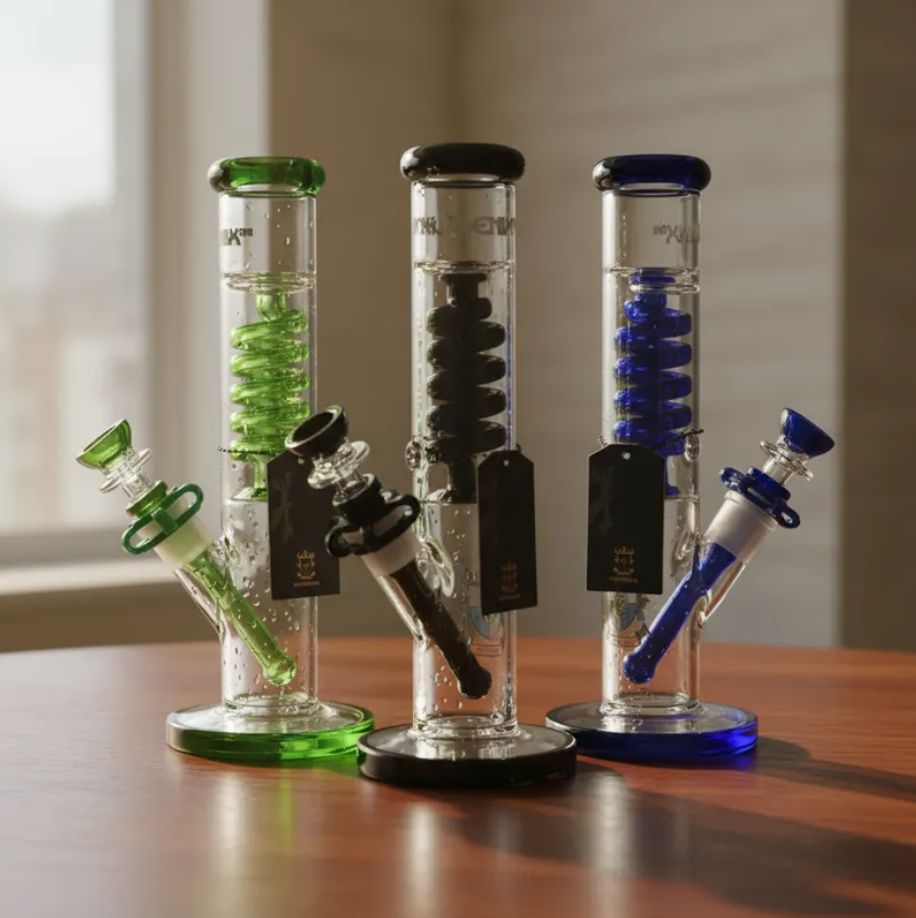 O percolator aspiral e o downstem com bowl são recheados com glicerina, permitindo que você leve o conjunto ao freezer por 1 a 2 horas antes de usar. O resultado é uma tragada ultra gelada, suave e saborosa, ideal para quem aprecia potência com conforto e quer reduzir os danos da fumaça quente.