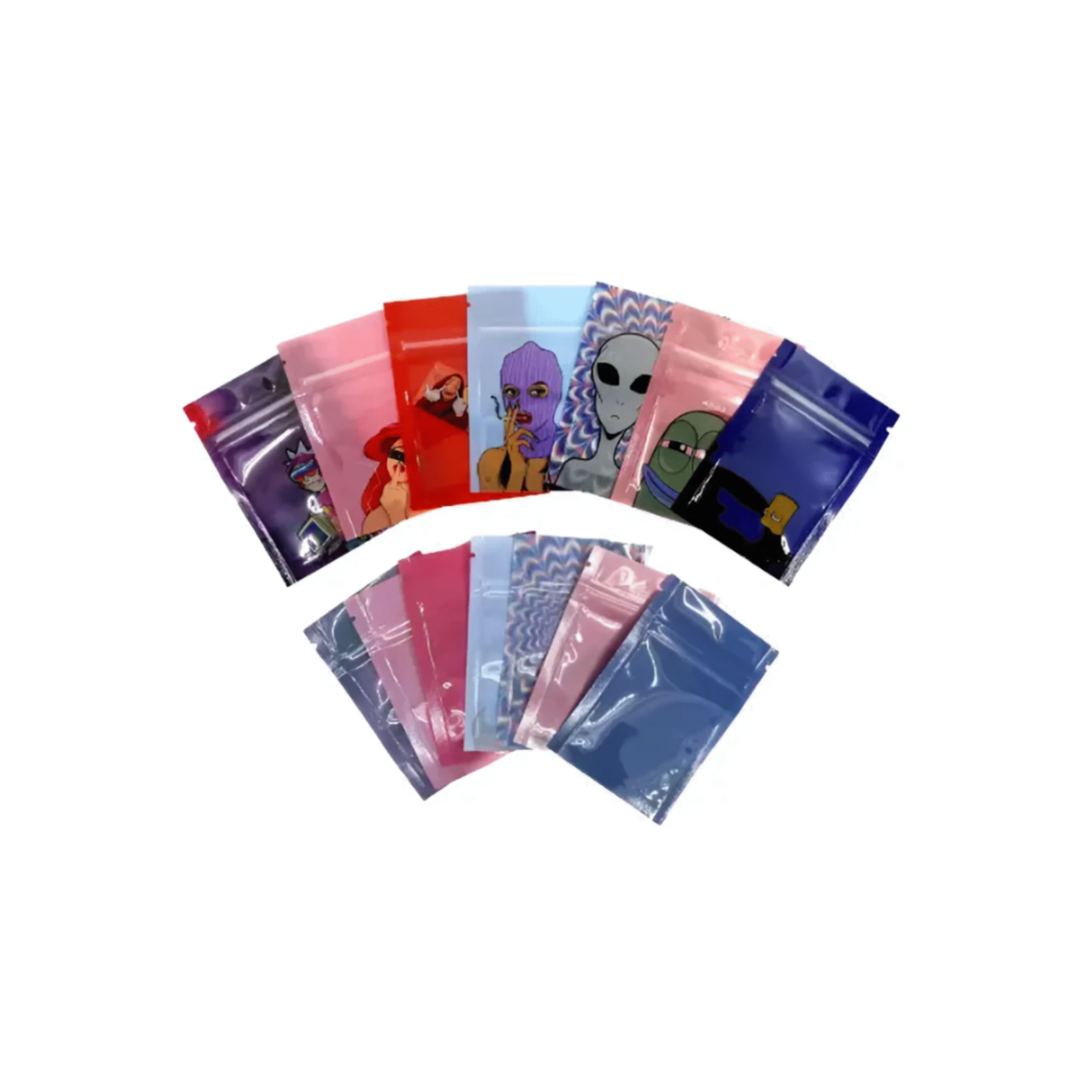 O Kit Ziplocks Personalizados Weed High oferece armazenamento seguro, discreto e estiloso para flores, ervas, pequenos produtos e acessórios. Composto por 100 unidades em tamanho ideal para porções de 4 a 15g, este kit é perfeito para organização, conservação e transporte.
