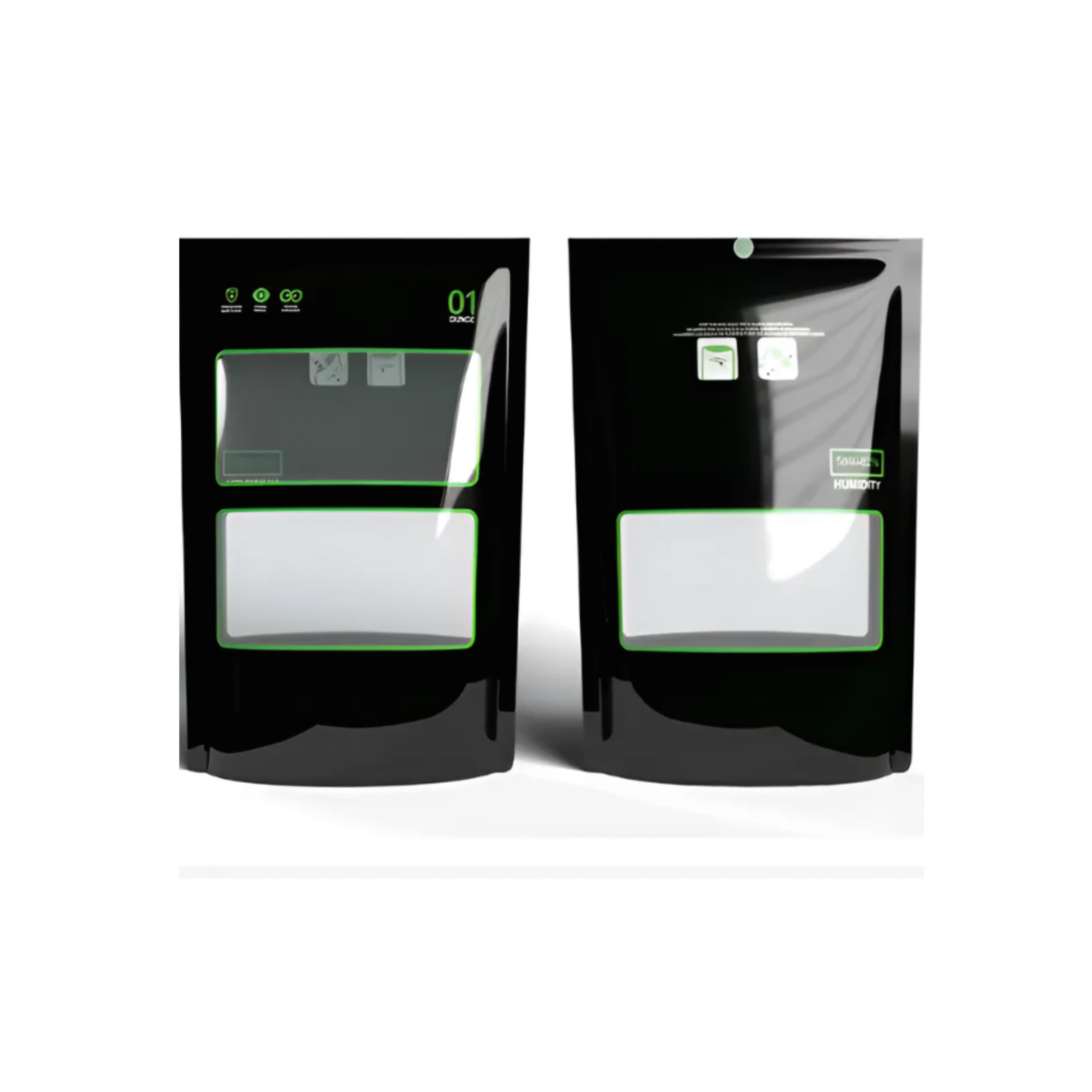 Material totalmente opaco e à prova de cheiro, contendo ao máximo os aromas internos sem permitir escape para o exterior.