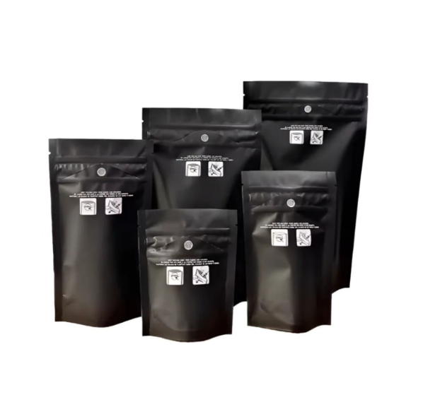 Com controle de umidade entre 58–62%, os sacos criam o ambiente ideal para conservação, evitando mofo e preservando terpenos e características naturais do produto. O sistema child-resistant com vedação dupla garante segurança e discrição total.