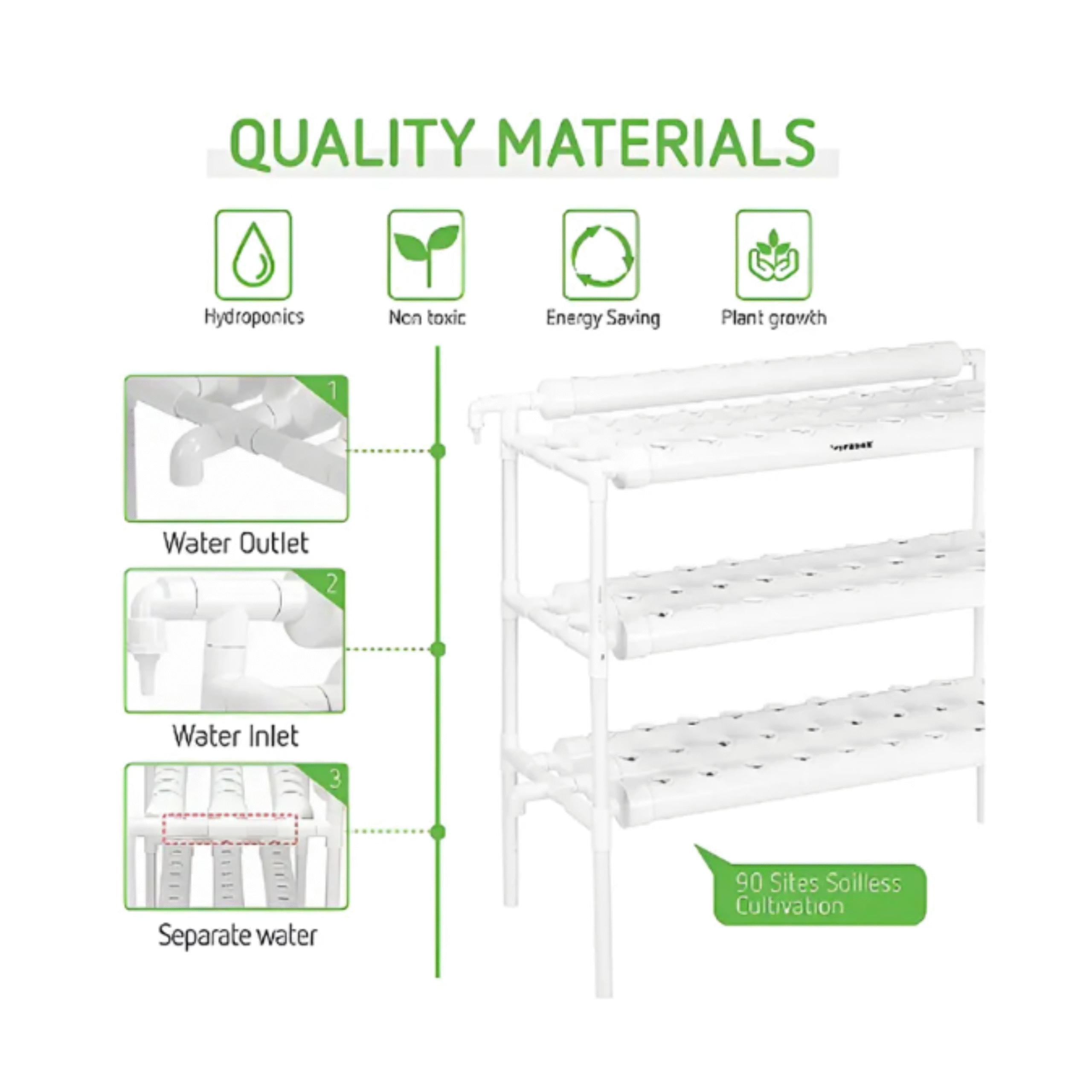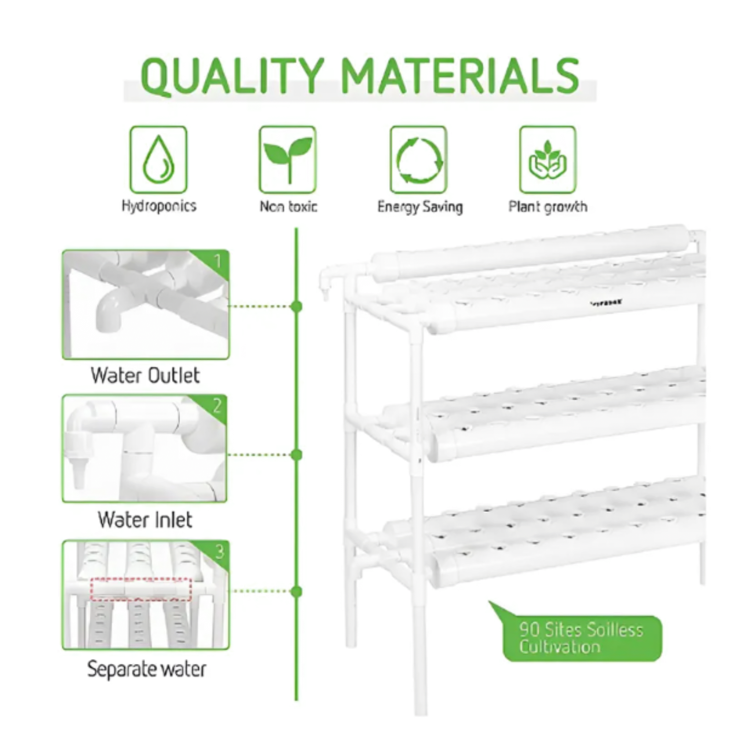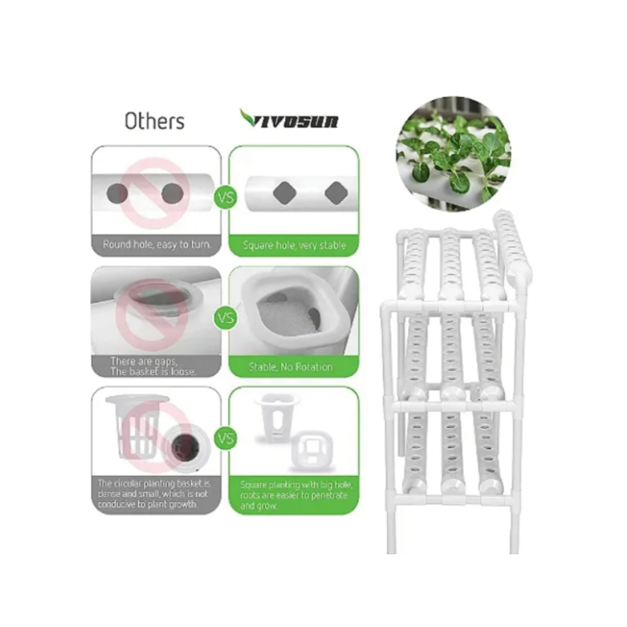 O Kit de Cultivo Hidropônico VIVOSUN 3 Andares com 90 Células é a solução ideal para quem busca produção eficiente, economia de espaço e crescimento acelerado das plantas. Com estrutura vertical e sistema hidropônico de alto desempenho, ele permite cultivar até 90 mudas simultaneamente, garantindo máxima produtividade em ambientes internos ou externos.