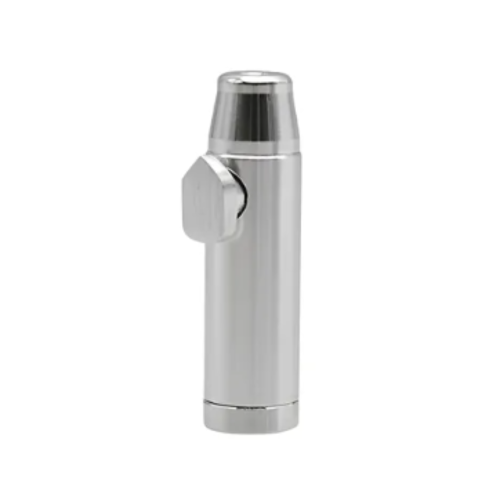 O Snuff Dosador Bullet de Alumínio é compacto, prático e ideal para armazenar e dosar pequenas quantidades de pós finos, sais aromáticos, energéticos em pó, pigmentos, temperos ou outros materiais secos.