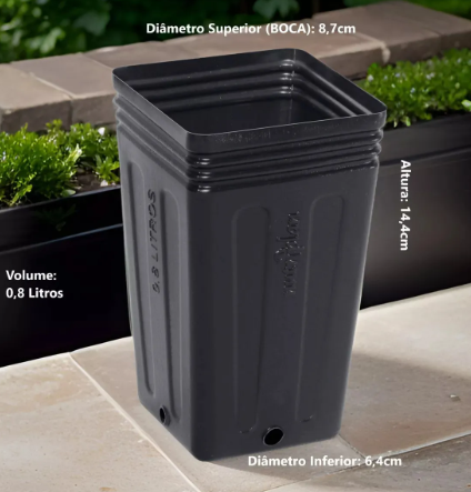 O Vaso Nutriplan 0,8L Quadrado é a escolha perfeita para quem busca praticidade, eficiência e ótimo desenvolvimento das mudas. Fabricado em plástico resistente de alta qualidade, ele oferece excelente durabilidade e estabilidade, garantindo que suas plantas cresçam com saúde desde as primeiras fases do cultivo.
