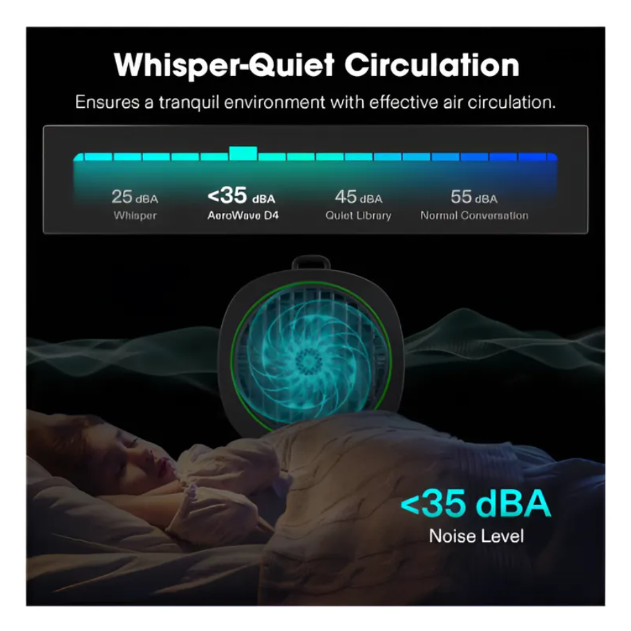 Equipado com motor EC silencioso e econômico, o AeroWave D4 combina potência e baixo consumo de energia, alcançando até 3500 RPM com ruído inferior a 35 dBA.